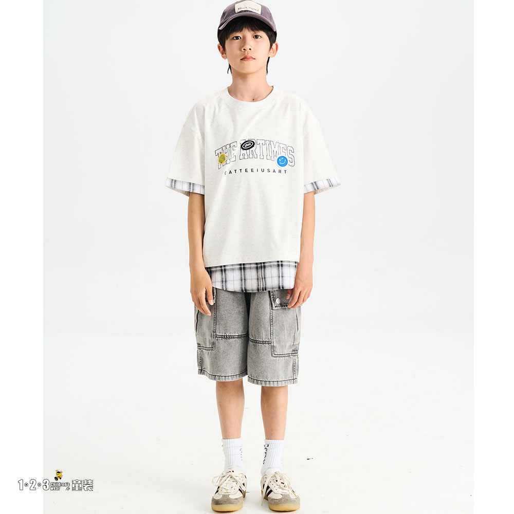 (多多同款)浅灰 夏款 男大童0384 DDDD时尚基础短T1+2=3童装连锁