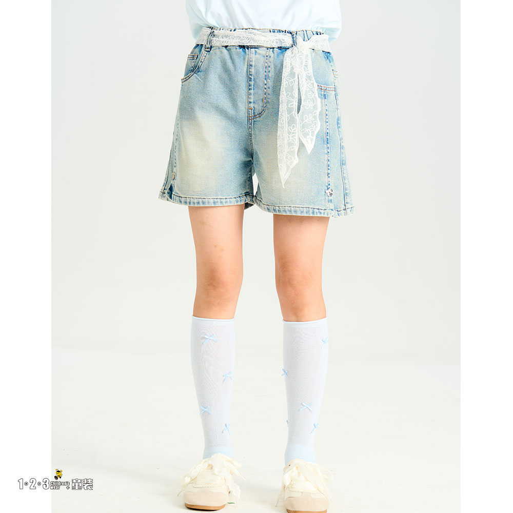 (多多同款)【特价】牛仔蓝 夏款 150-175女大童0523 DDDD时尚牛仔短裤1+2=3童装连锁