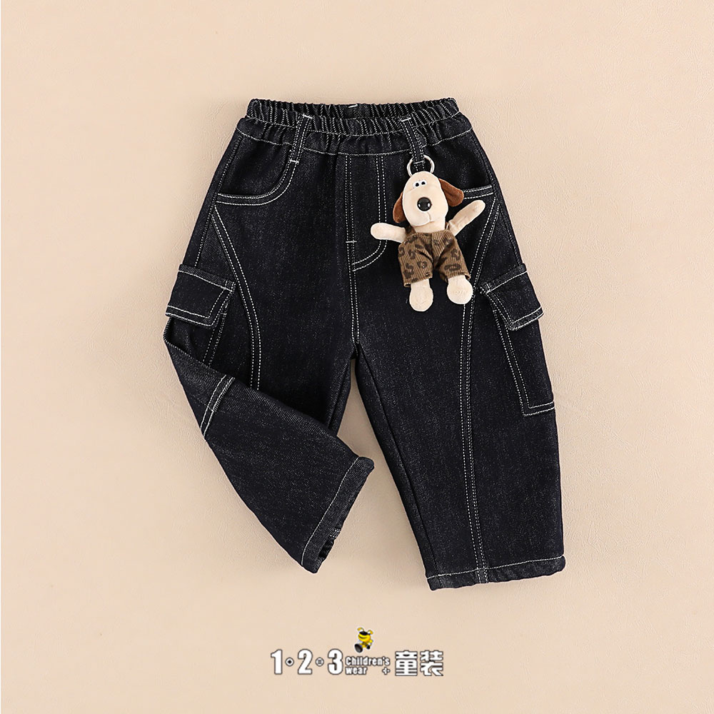 【特价】深蓝 冬款 90-130男小童DK8045 LBDD时尚牛仔夹裤1+2=3童装连锁