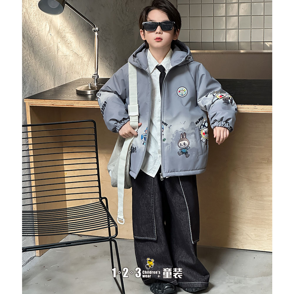 灰 冬款 男中童DK8203 XLDD时尚薄棉衣1+2=3童装连锁