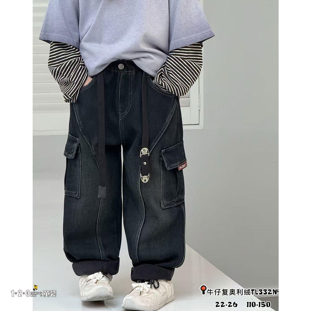 (一体绒)★【特价】深蓝 冬款 110-150男中童332 JKDD时尚牛仔夹裤1+2=3童装连锁