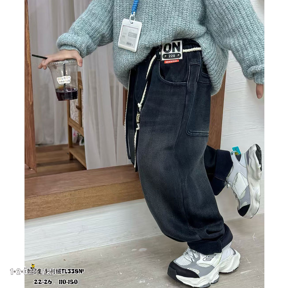 (一体绒)★【特价】深蓝 冬款 110-150男中童338 JKDD时尚牛仔夹裤1+2=3童装连锁