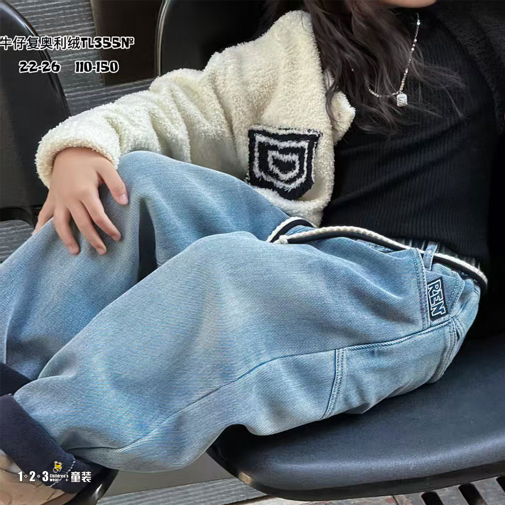 (一体绒)★【特价】浅蓝 冬款 110-150男中童355 JKDD时尚牛仔夹裤1+2=3童装连锁