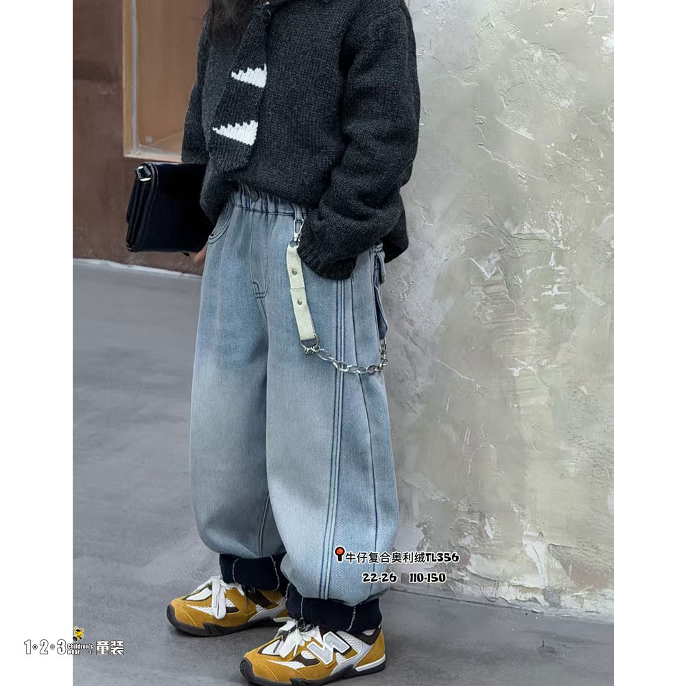 (一体绒)★【特价】浅蓝 冬款 110-150男中童356 JKDD时尚牛仔夹裤1+2=3童装连锁