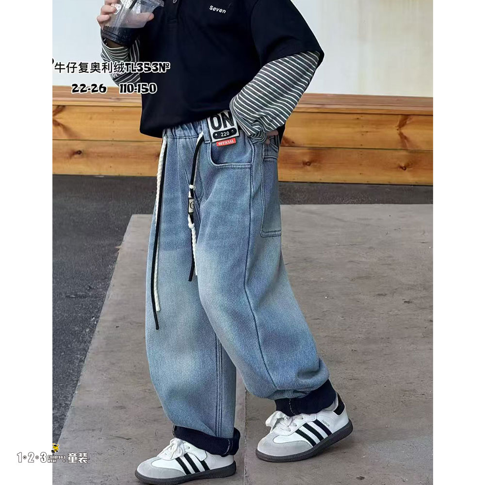 (一体绒)★【特价】浅蓝 冬款 110-150男中童353 JKDD时尚牛仔夹裤1+2=3童装连锁