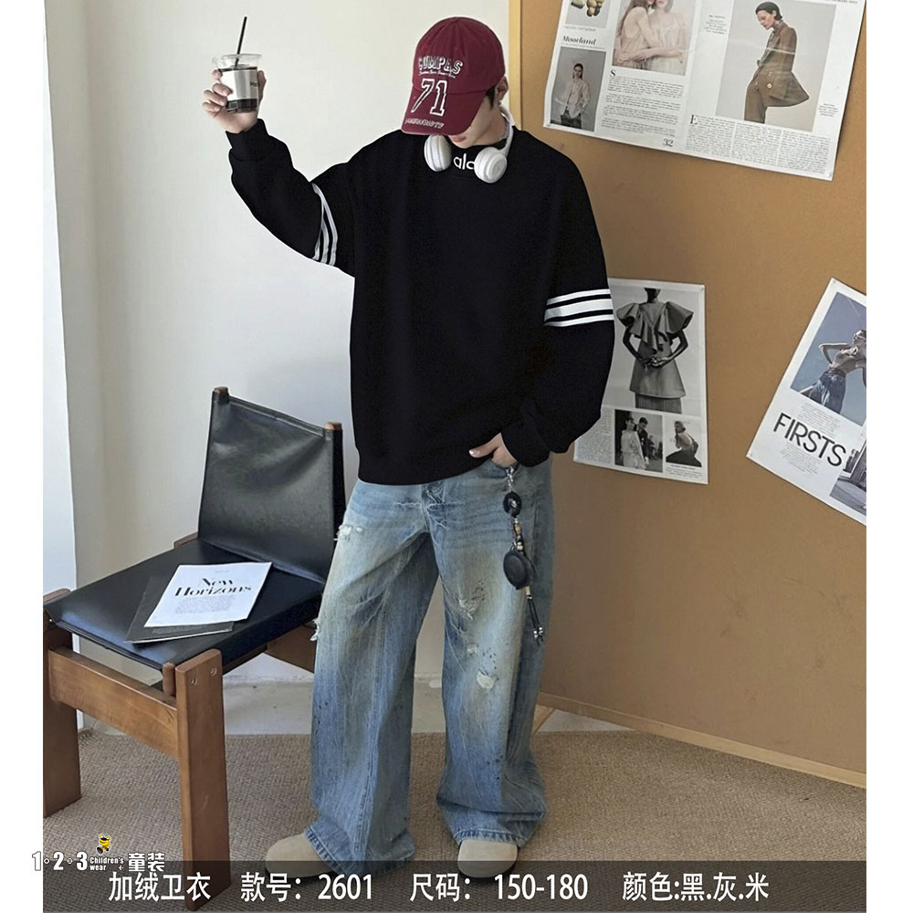 【双十一活动50.9元】★【特价】黑 冬款 男大童2601 DKDD时尚厚套头衫1+2=3童装连锁