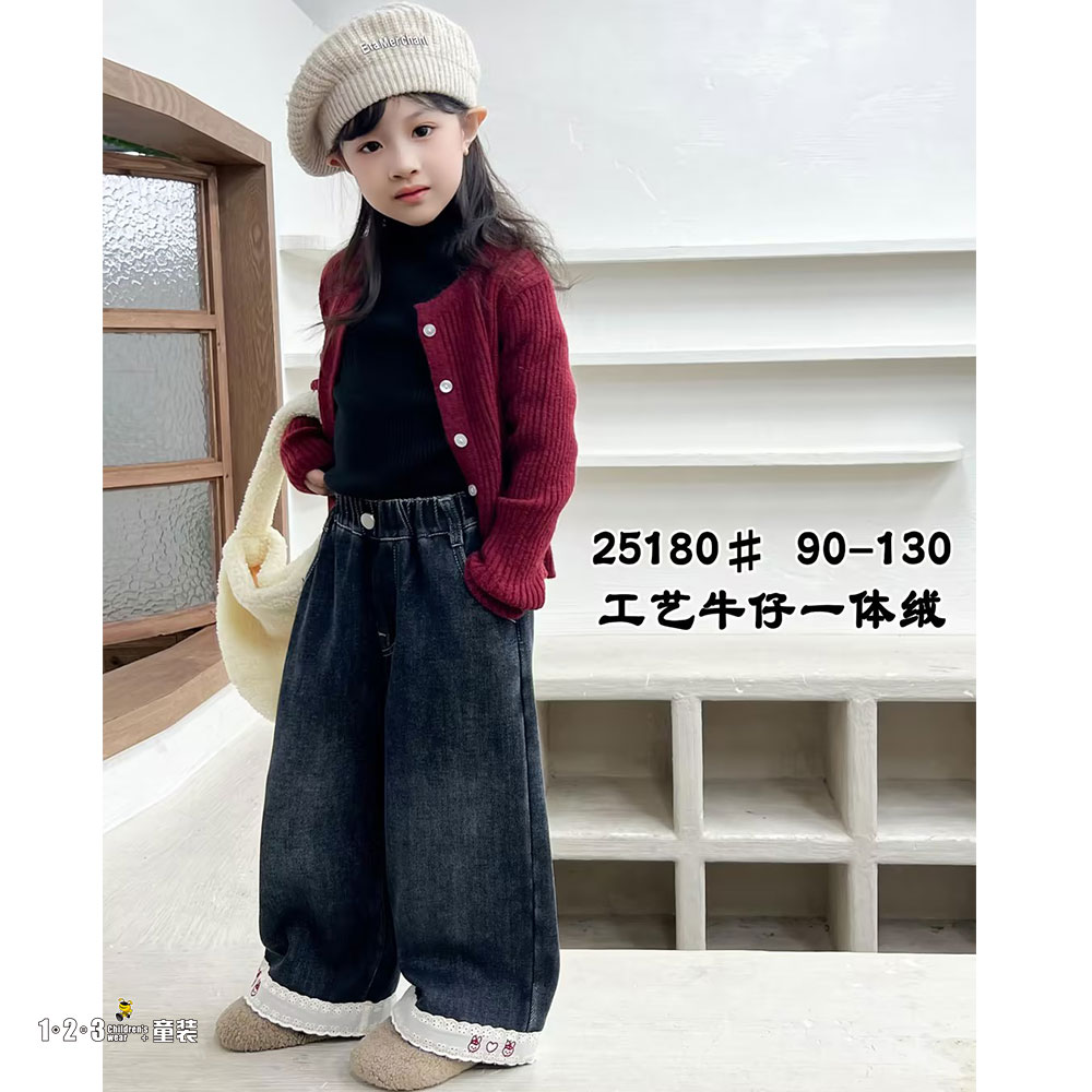 【双十一活动43.9元】★【特价】蓝 冬款 90-130女小童25180 HYDD时尚牛仔夹裤1+2=3童装连锁