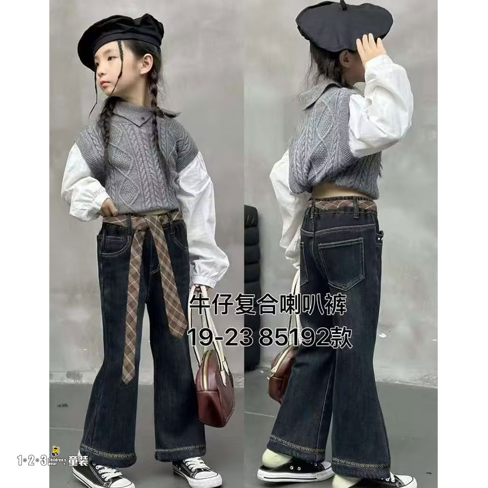【双十一活动51.9元】★【特价】蓝 冬款 19-23女中童85192 BBDD时尚牛仔夹裤1+2=3童装连锁