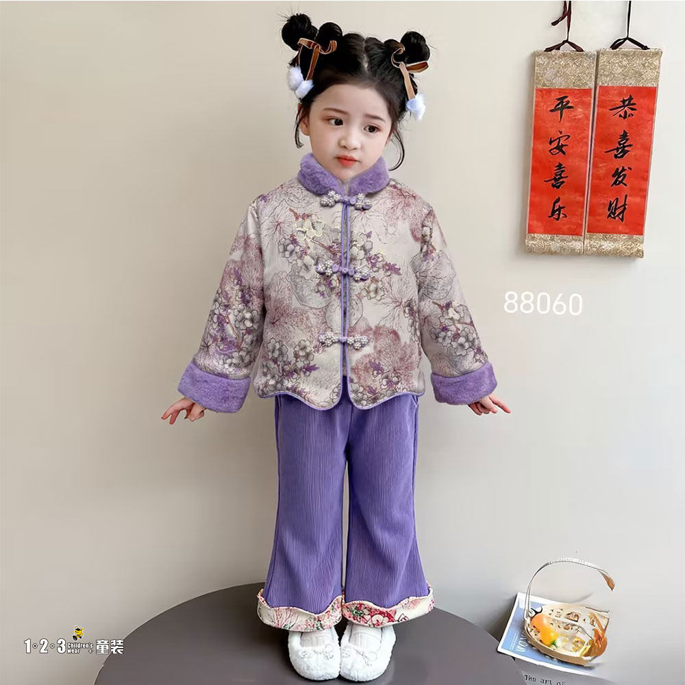 【双十一活动70.9元】★紫 冬款 女小童88060 LJDD时尚长袖厚套装1+2=3童装连锁