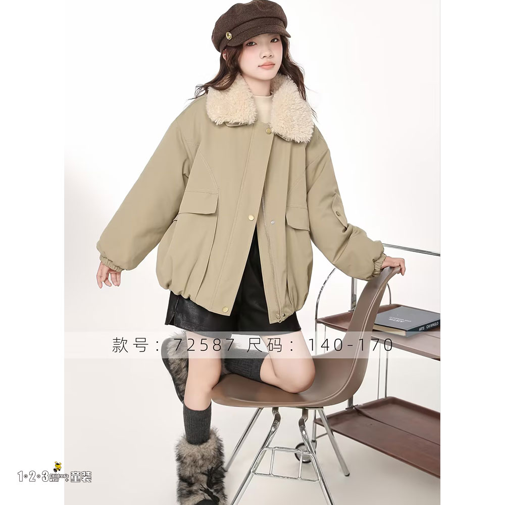 【双十一活动93.9元】★卡其 冬款 女大童72587 YRDD时尚薄棉衣1+2=3童装连锁