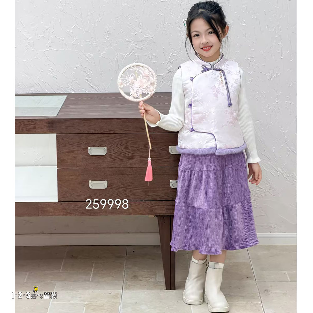 ★紫 冬款 女中童259998 KJDD时尚长袖厚套装1+2=3童装连锁