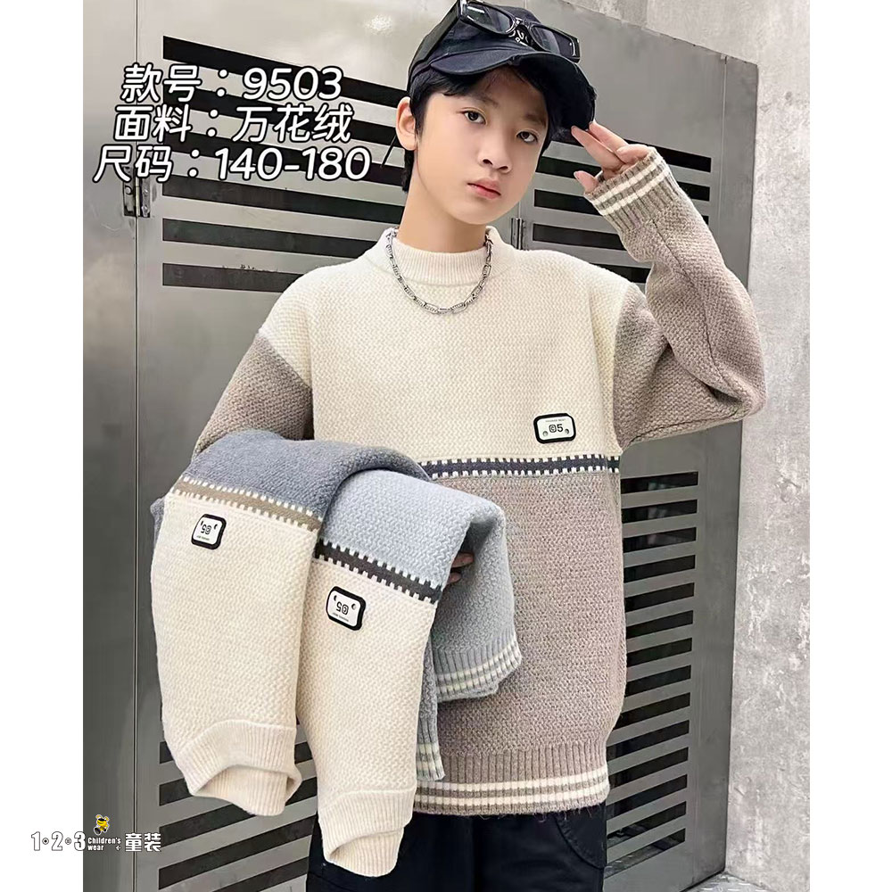 ★【福利专享42.9元】【特价】卡其 冬款 男大童9503 GDDD时尚厚毛衣1+2=3童装连锁