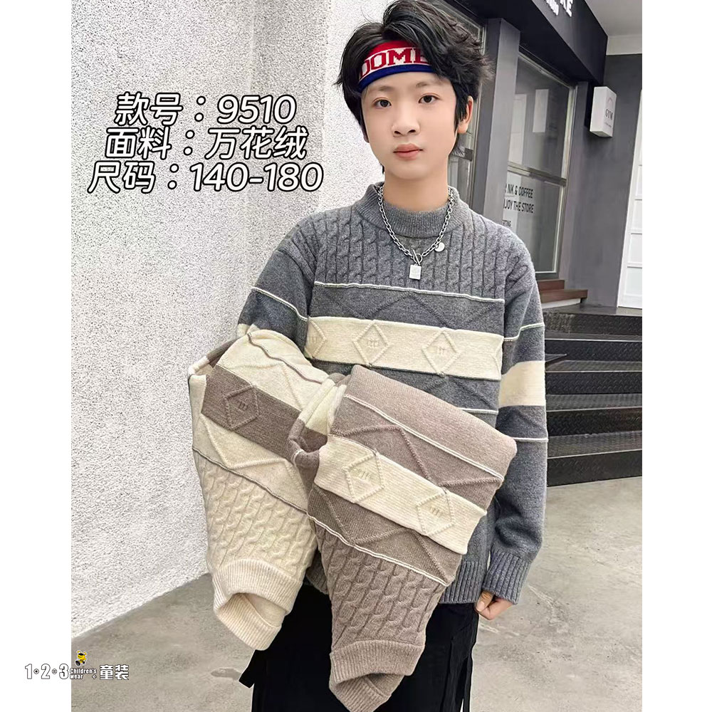★【福利专享42.9元】【特价】卡其 冬款 男大童9510 GDDD时尚厚毛衣1+2=3童装连锁