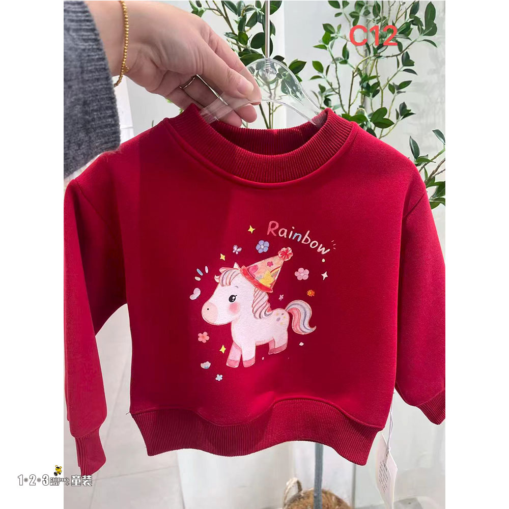 【福利专享28.9元】★【特价】红 冬款 女小童C12 TMDD时尚厚套头衫1+2=3童装连锁