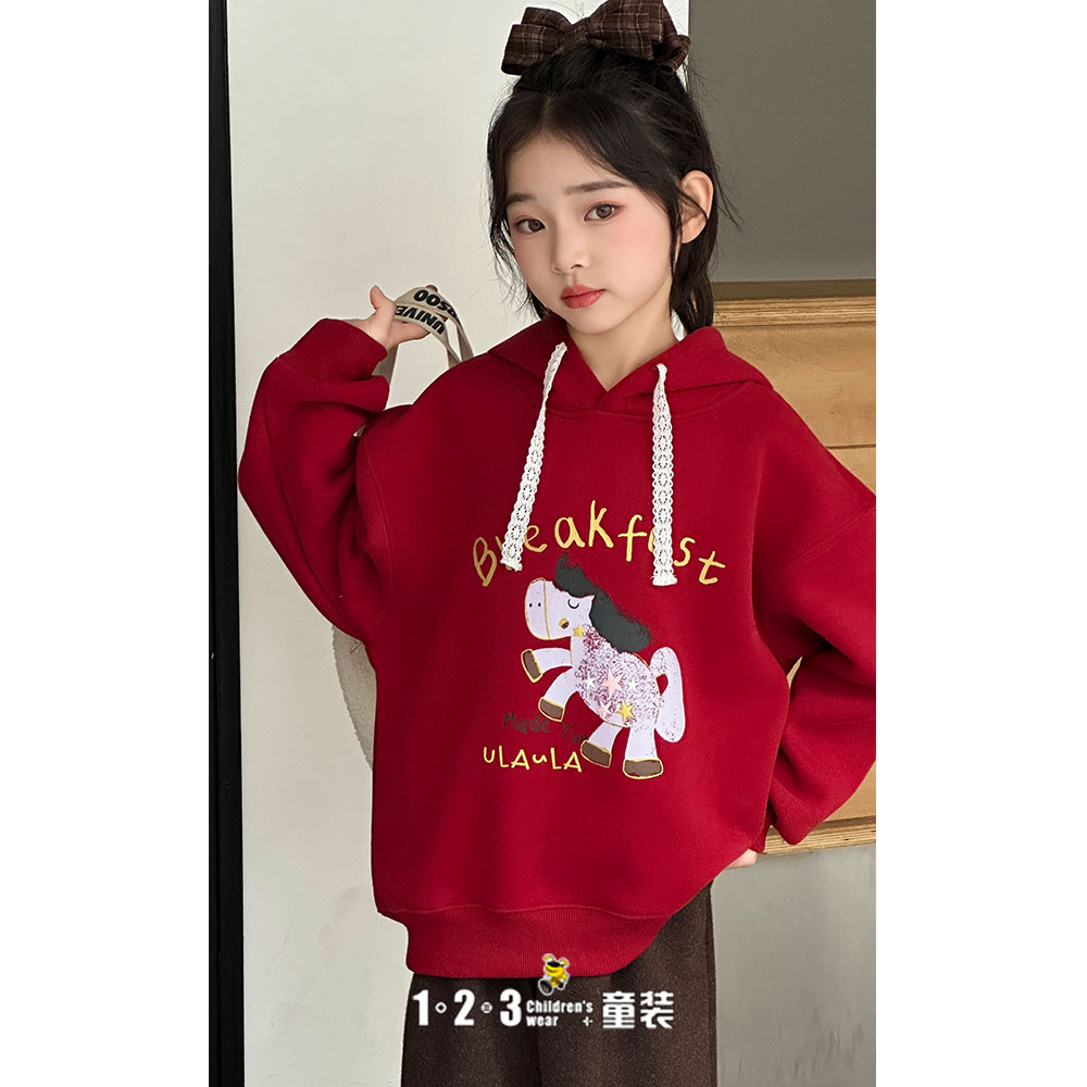 (年货款/奥粒一体绒)【特价】红 冬款 女中童NH89252 QYDD时尚厚套头衫1+2=3童装连锁