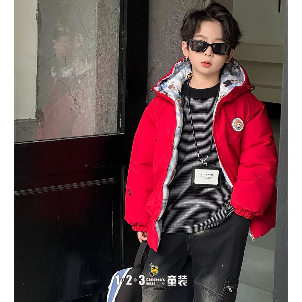 (年货款)(两面穿)红 冬款 男中童NH68102 XLDD时尚厚棉衣1+2=3童装连锁