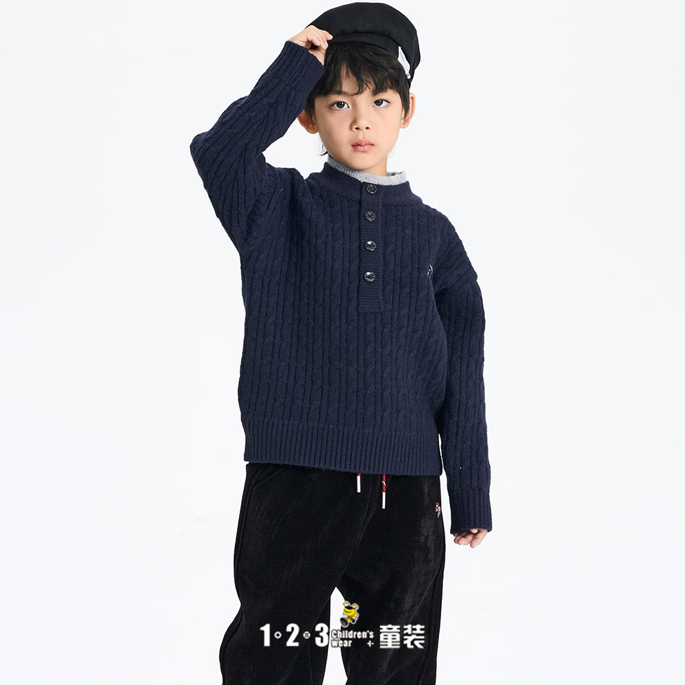 (多多同款)【特价】藏青 冬款 男中童5M20753 DDDD时尚厚毛衣1+2=3童装连锁