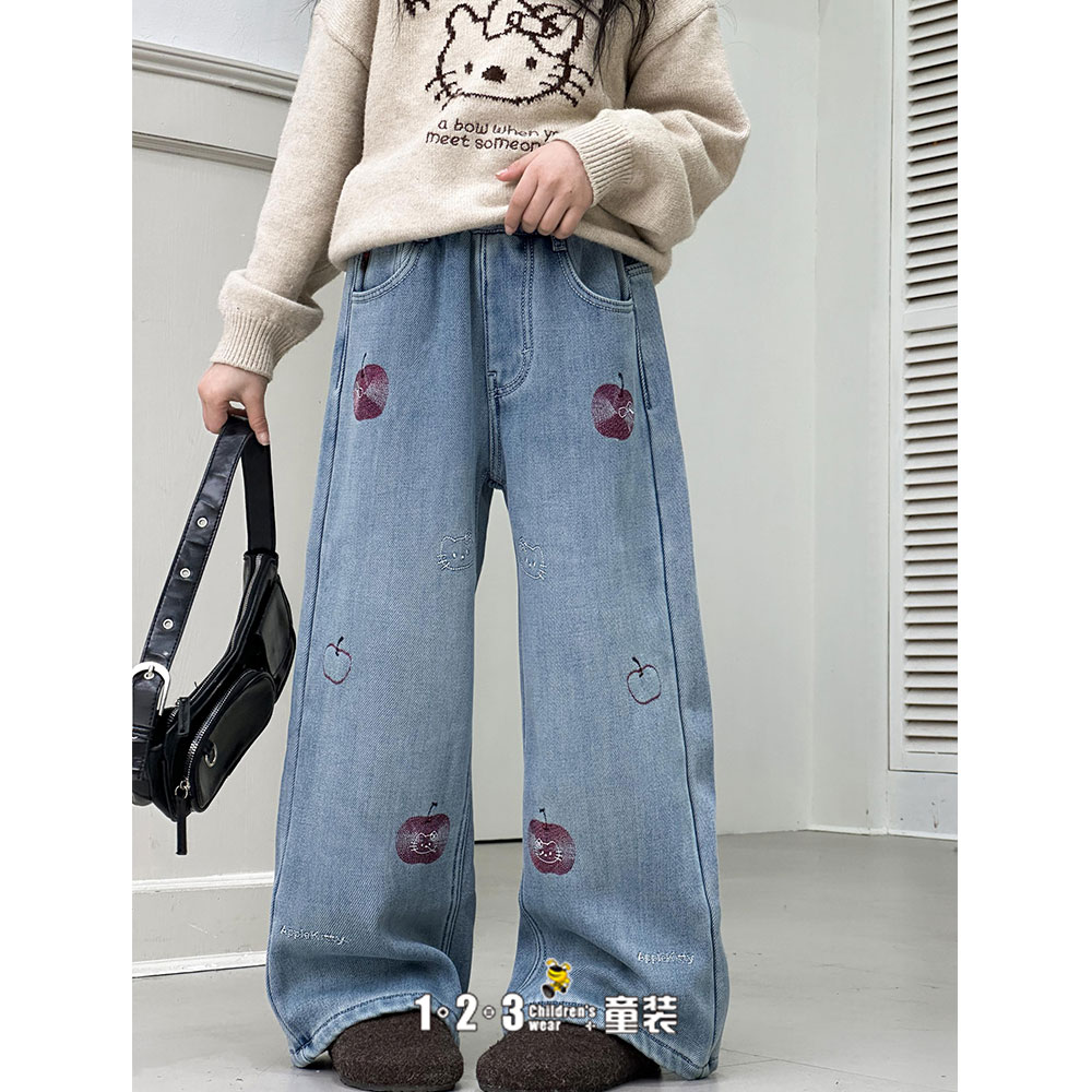 (一体绒)【特价】蓝 冬款 24-28女中童NH5689 BBDD时尚牛仔夹裤1+2=3童装连锁