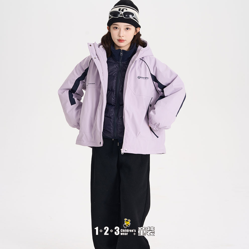 (多多同款)紫 冬款 女大童5F20740 DDDD时尚羽绒服1+2=3童装连锁