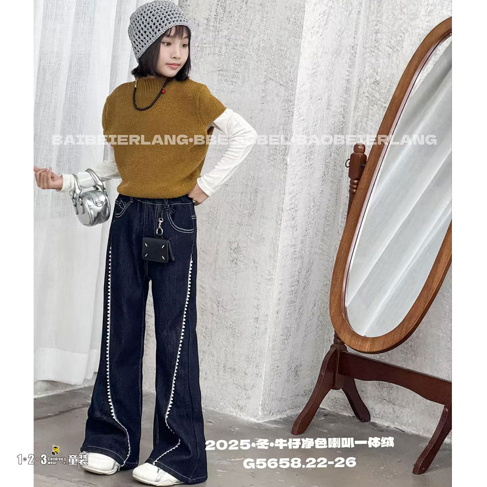 ★【特价】蓝 冬款 22-26女中童5658 BBDD时尚牛仔棉裤1+2=3童装连锁