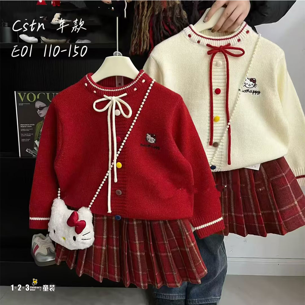 ★【特价】红 冬款 女中童E01 CSDD时尚厚毛衣1+2=3童装连锁