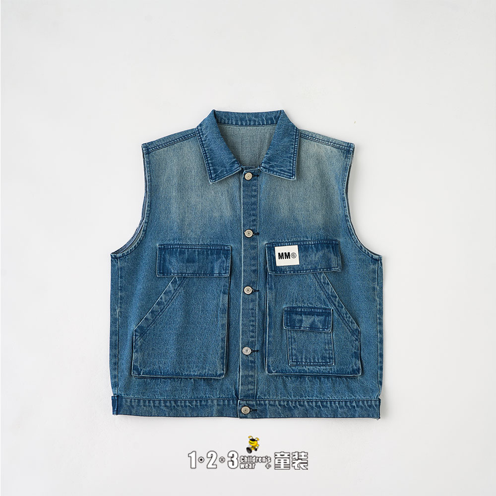 《复古》(多多同款)牛仔蓝 春款 男大童6M20184 DDDD时尚马甲1+2=3童装连锁