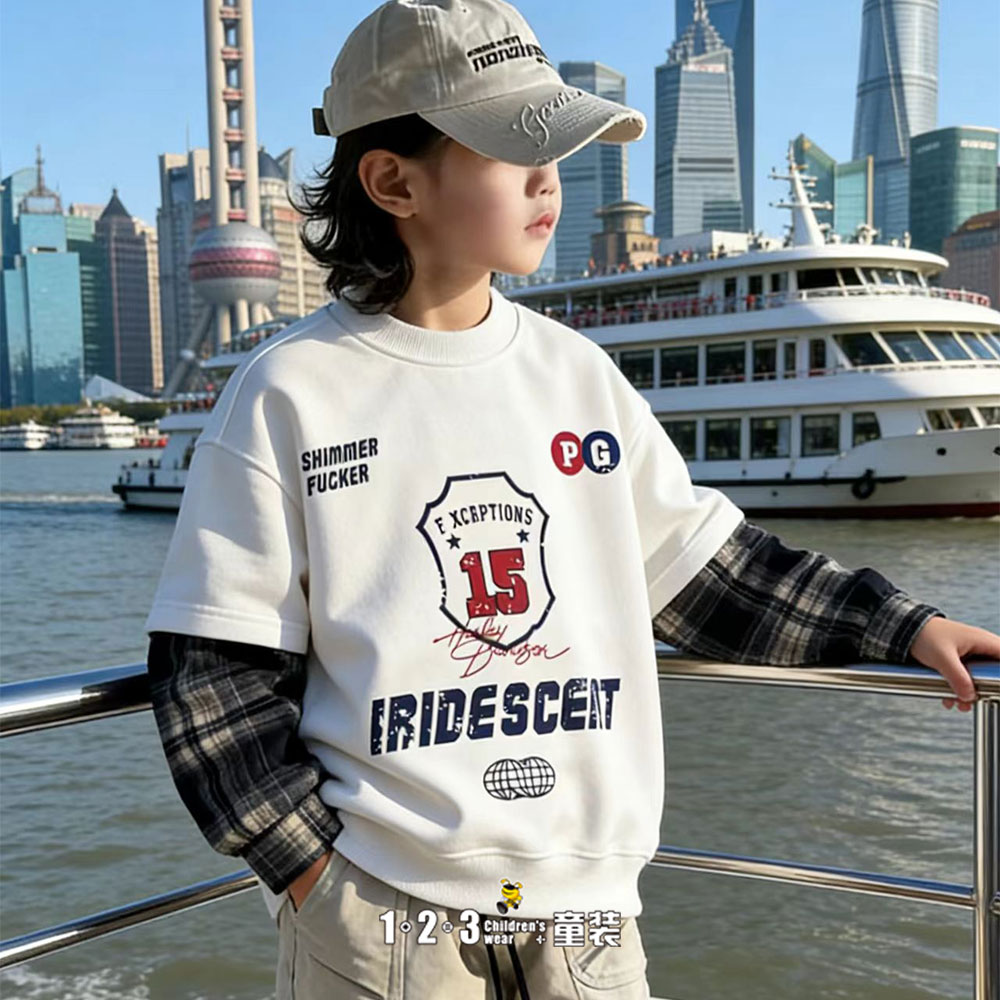 ★【特价】白 春款 男中童2671 FXDD时尚薄套头衫1+2=3童装连锁
