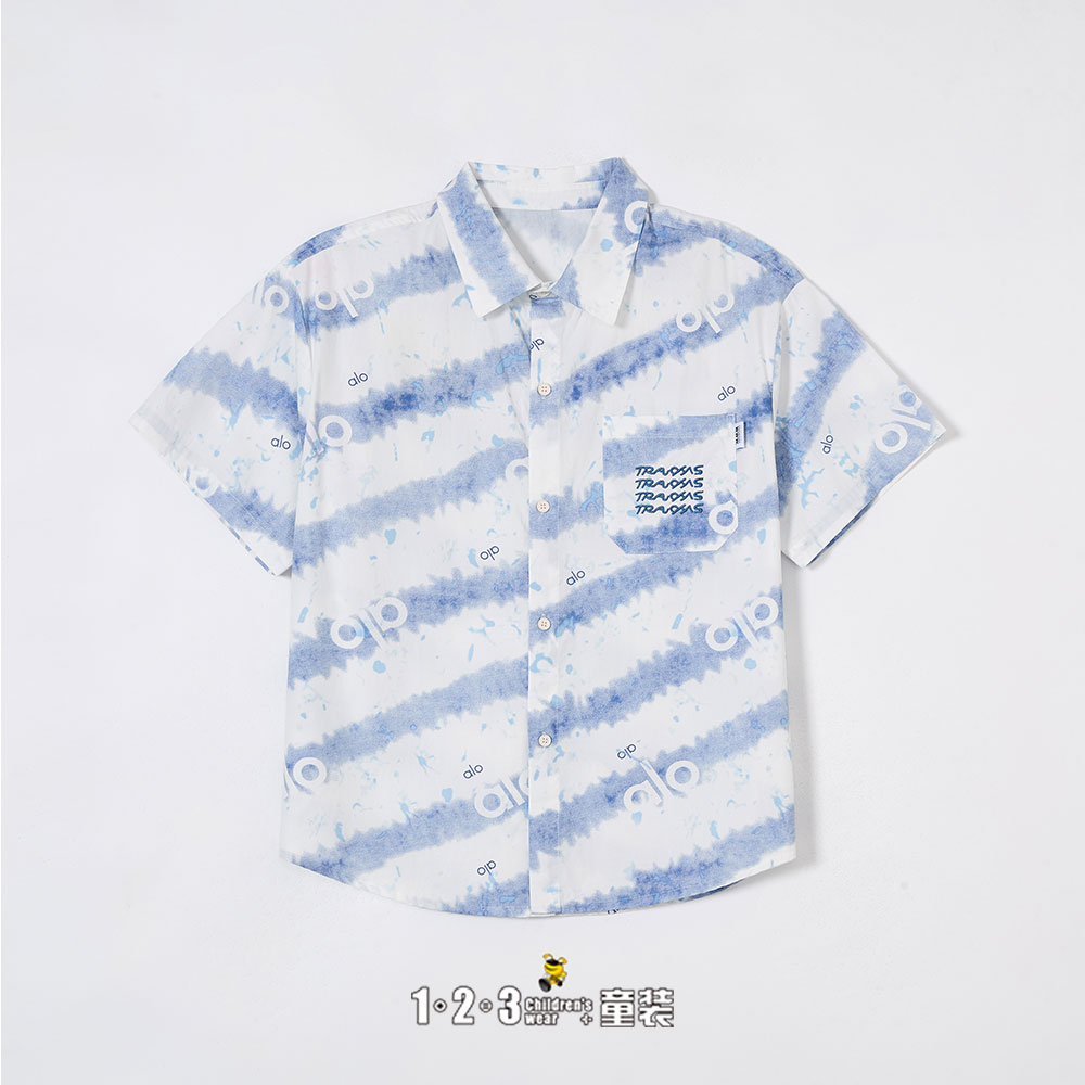 蓝 夏款 男大童6M20327 DDDD时尚短袖衬衫1+2=3童装连锁