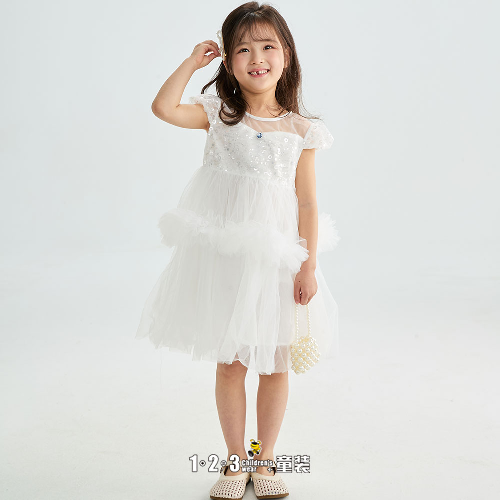 (多多同款)白 夏款 女小童6F20802 DDDD时尚短袖连衣裙1+2=3童装连锁