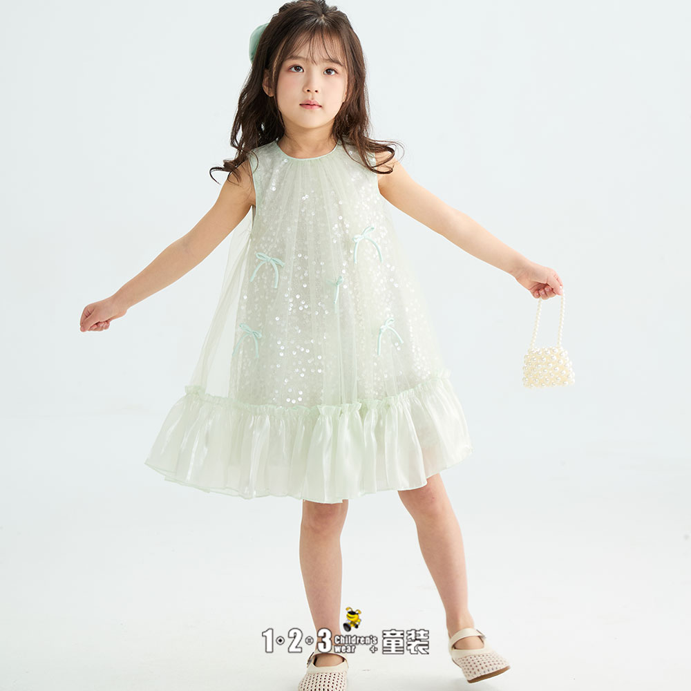 (多多同款)绿 夏款 女小童6F20807 DDDD时尚短袖连衣裙1+2=3童装连锁