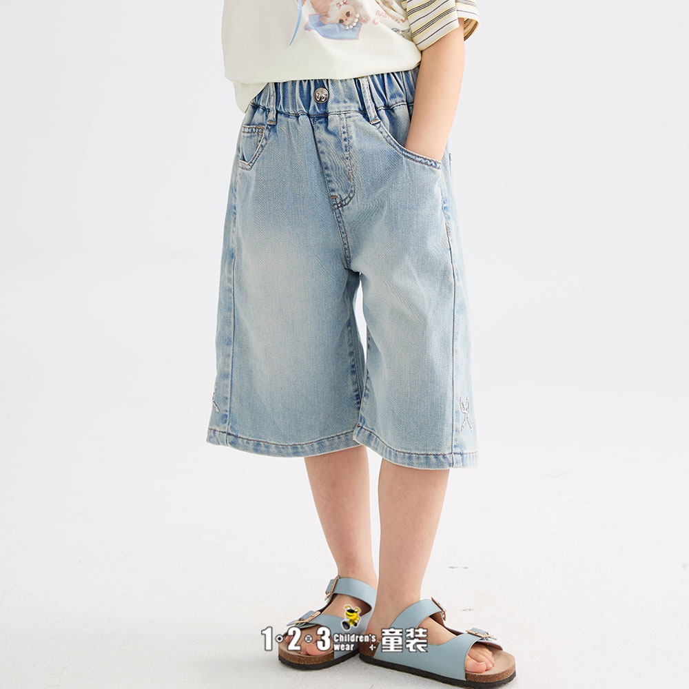 【特价】牛仔蓝 夏款 90-130女小童6F20845 DDDD时尚牛仔短裤1+2=3童装连锁