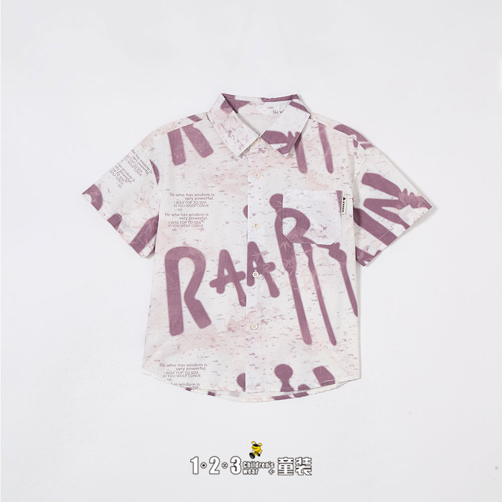 紫 夏款 男小童6M20793 DDDD时尚短袖衬衫1+2=3童装连锁