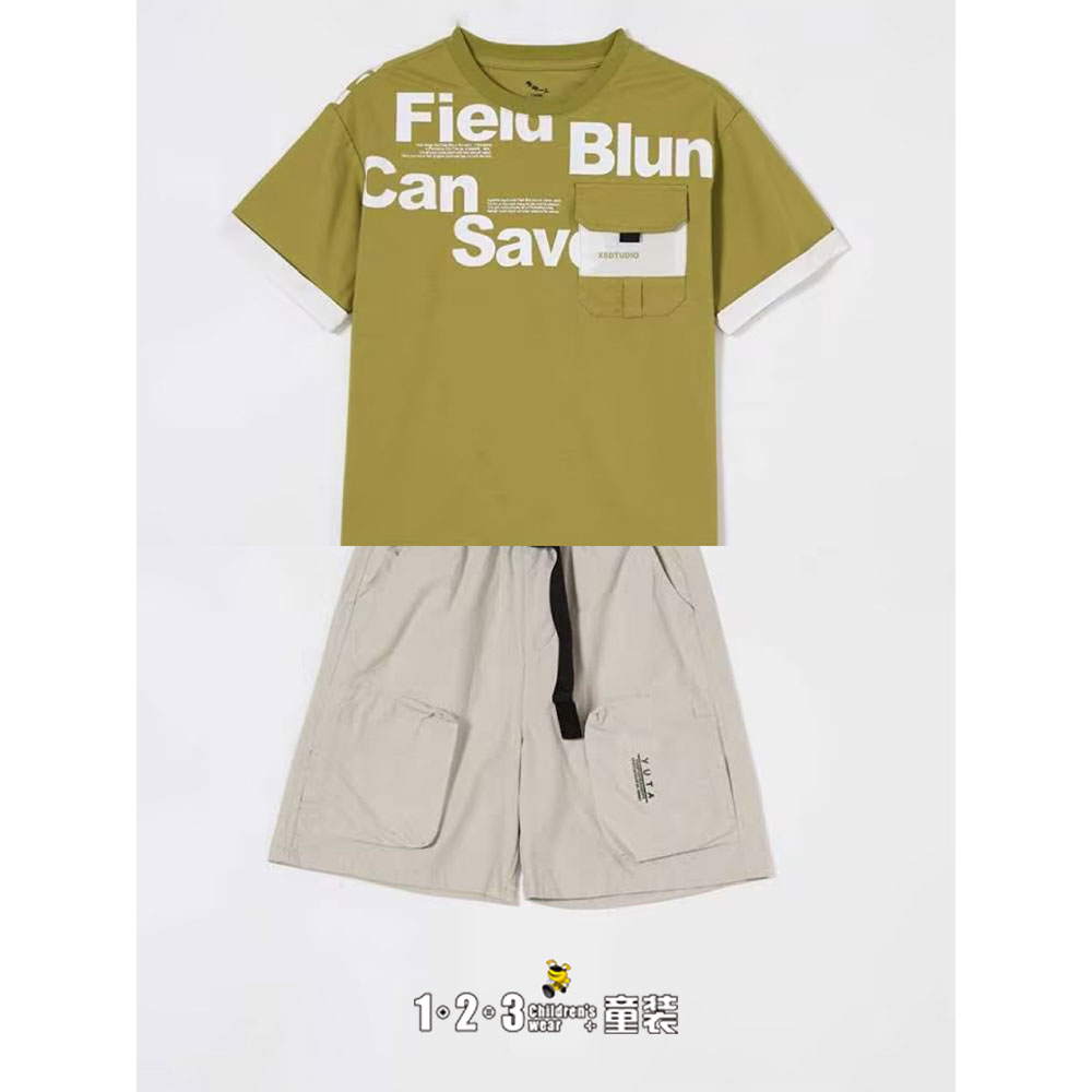 (多多同款)绿 夏款 男小童6M20785 DDDD时尚短袖套装1+2=3童装连锁