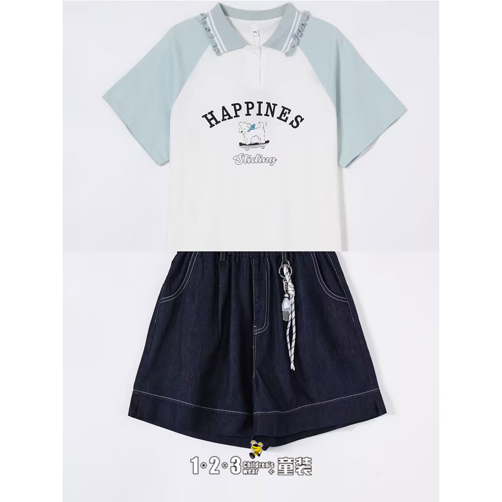 浅蓝 夏款 女大童6F20835 DDDD时尚短袖套装1+2=3童装连锁