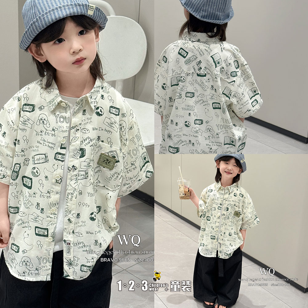 ★绿 夏款 男中童9665 WQDD时尚短袖衬衫1+2=3童装连锁