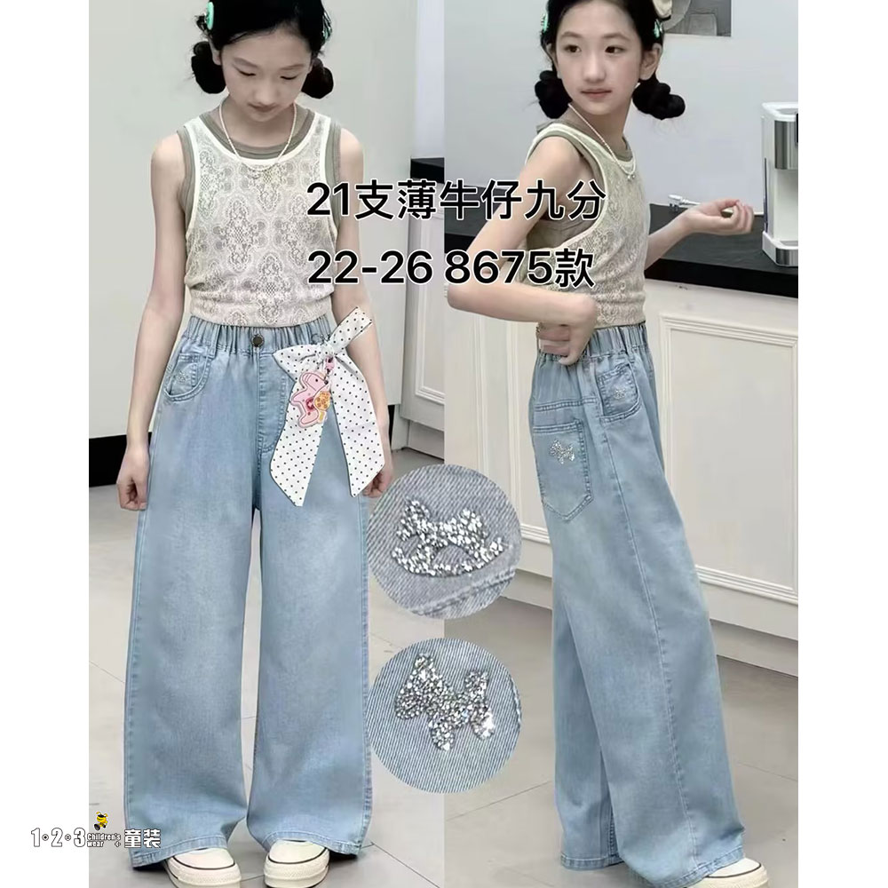 ★【特价】浅蓝 夏款 22-26女中童8675 SSDD时尚牛仔中裤1+2=3童装连锁