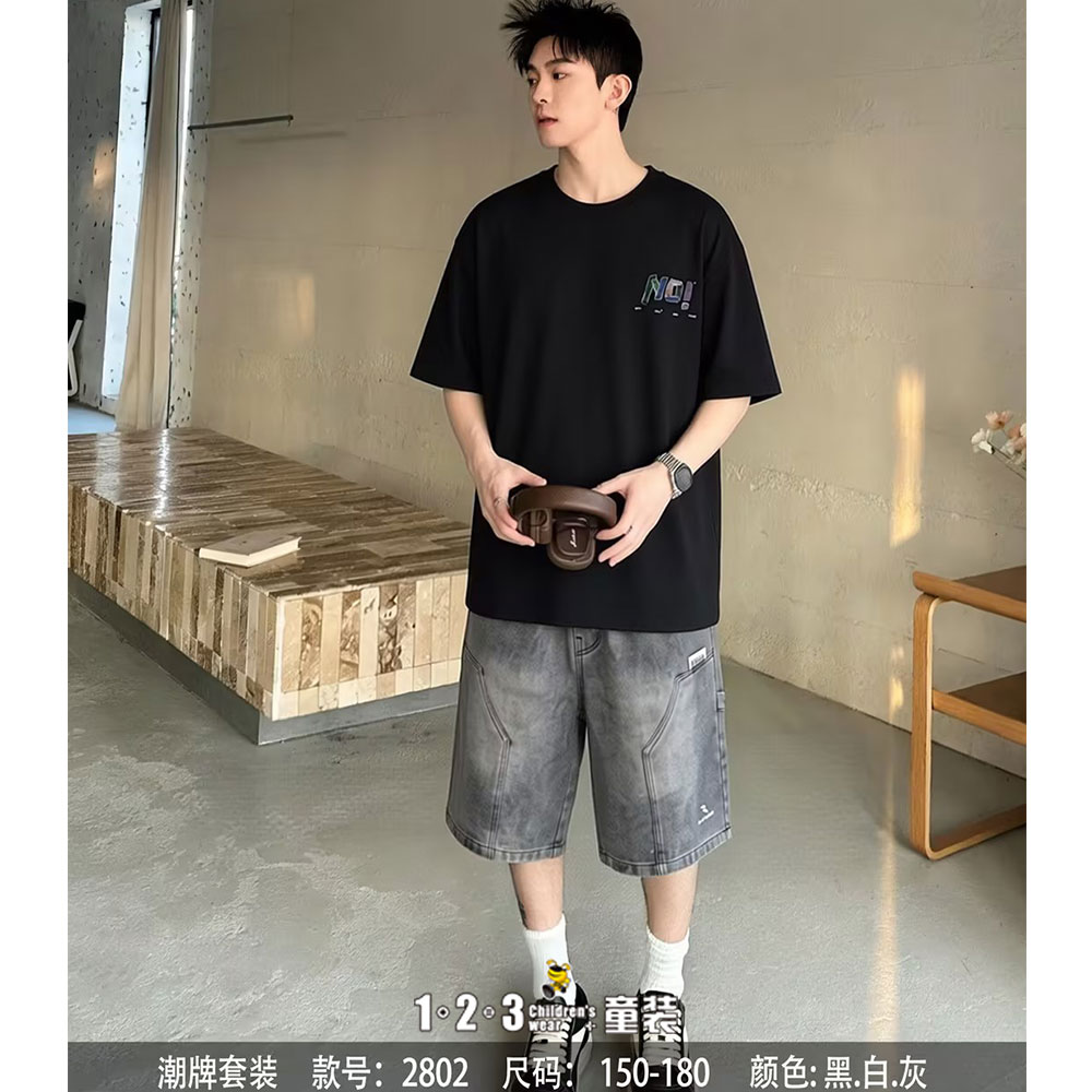 ★黑 夏款 男大童2802 DKDD时尚短袖套装1+2=3童装连锁
