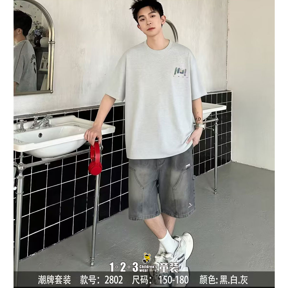 ★灰 夏款 男大童2802 DKDD时尚短袖套装1+2=3童装连锁