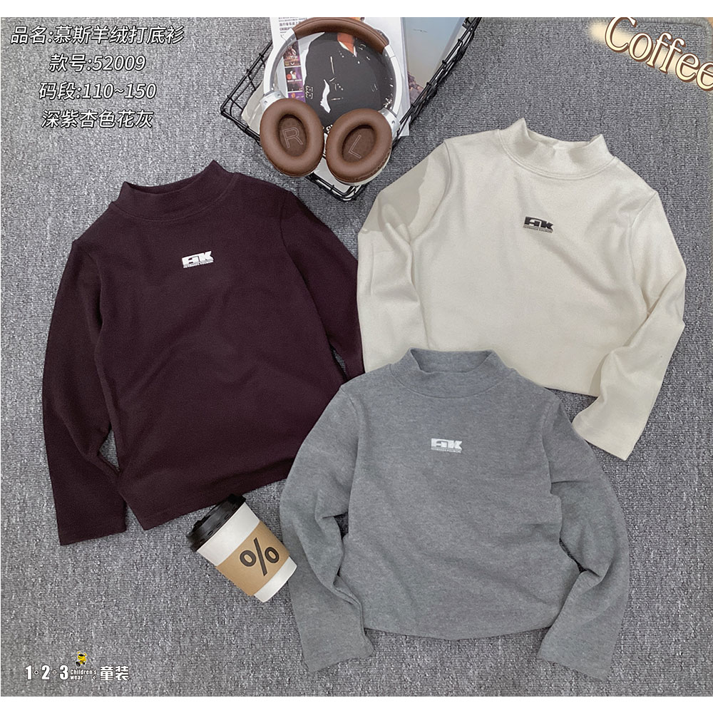 ★(单层加厚慕斯羊绒)【特价】杏 冬款 男中童52009 QWDD时尚厚打底衫1+2=3童装连锁