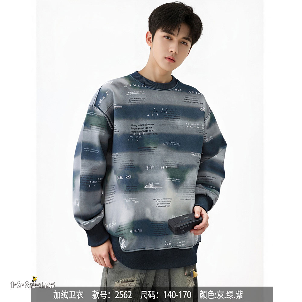 【双十一活动50.9元】★【特价】烟灰 冬款 男大童2562 DKDD时尚厚套头衫1+2=3童装连锁