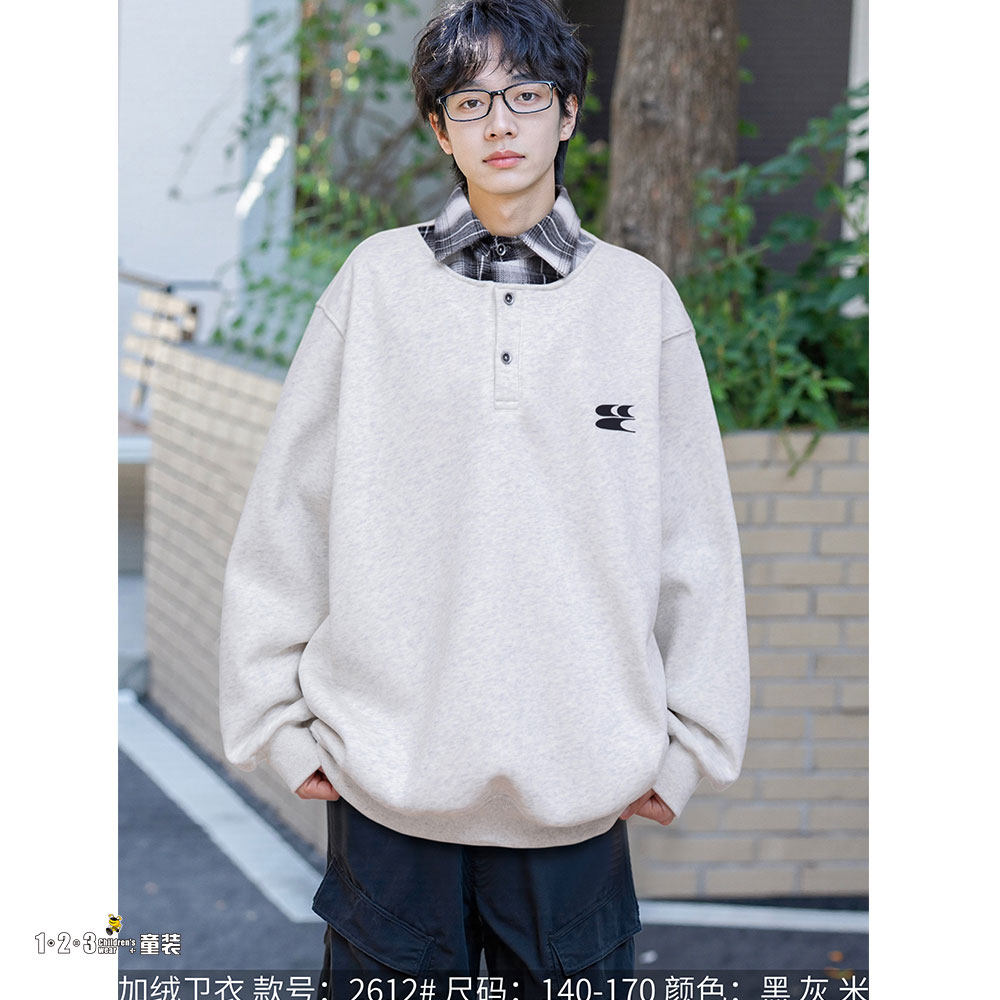 【双十一活动61.9元】★【特价】烟灰 冬款 男大童2612 DKDD时尚厚套头衫1+2=3童装连锁