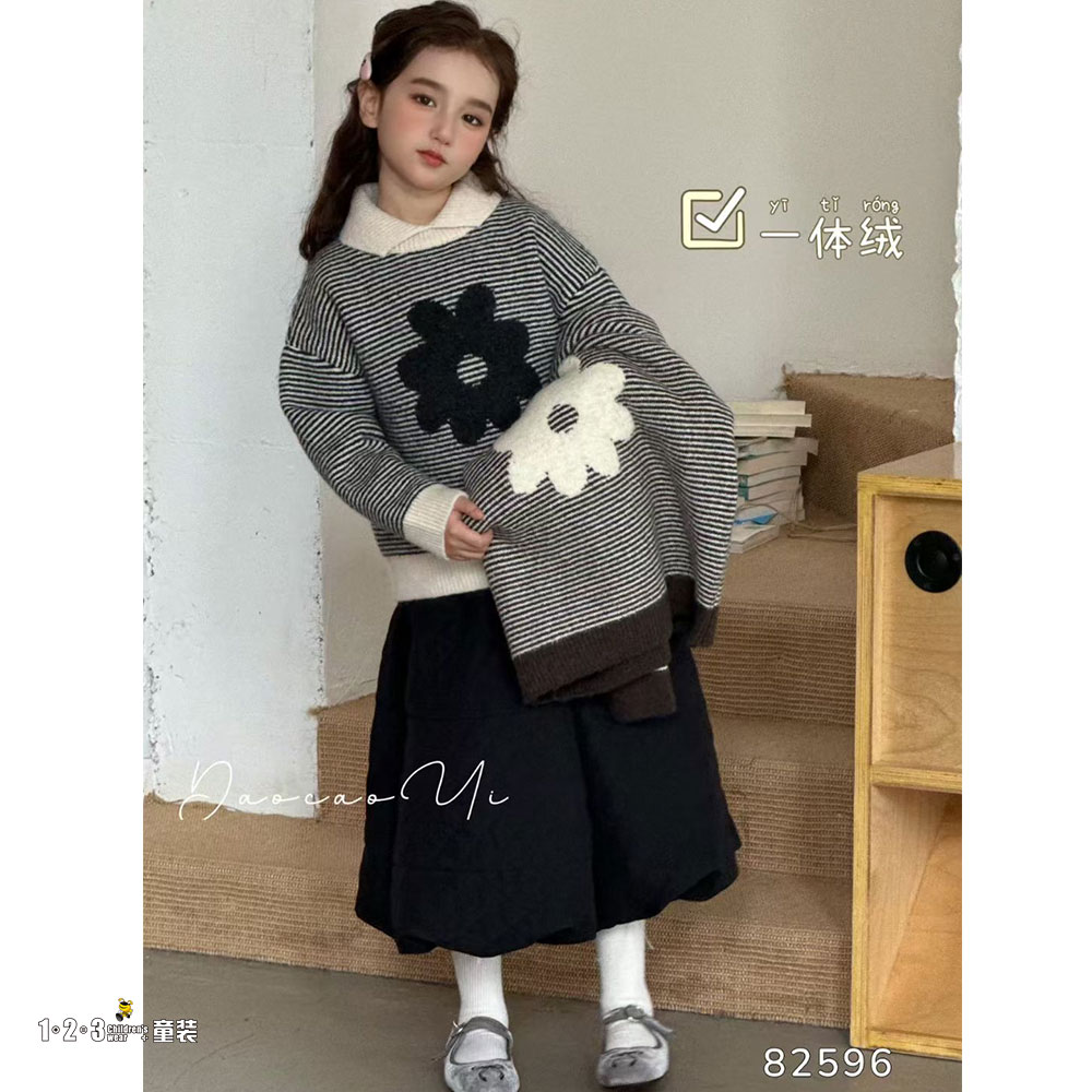 ★【特价】咖啡 冬款 女中童82596 DCDD时尚厚毛衣1+2=3童装连锁
