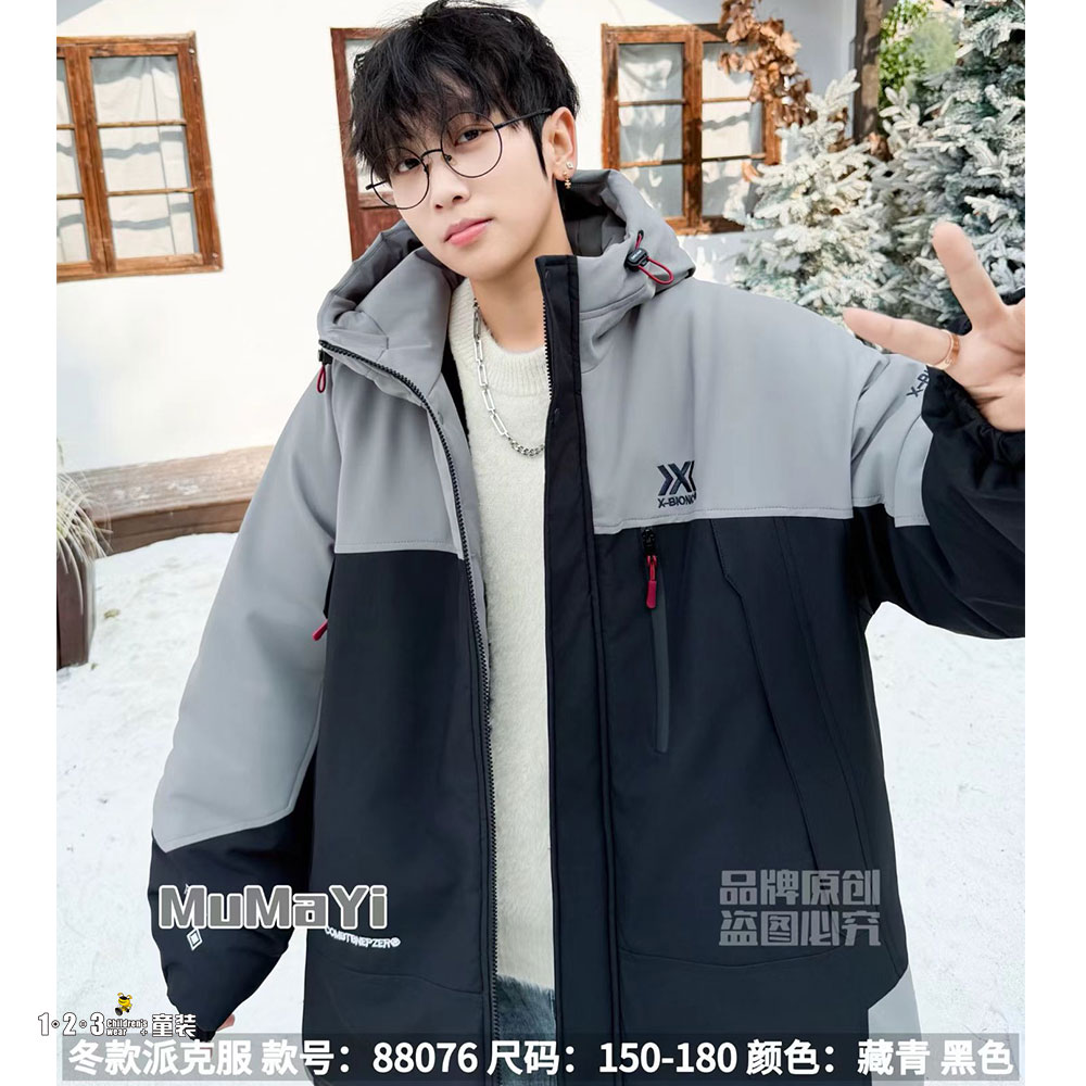 【双十一活动125.9元】★藏青 冬款 男大童88076 ABDD时尚厚棉衣1+2=3童装连锁