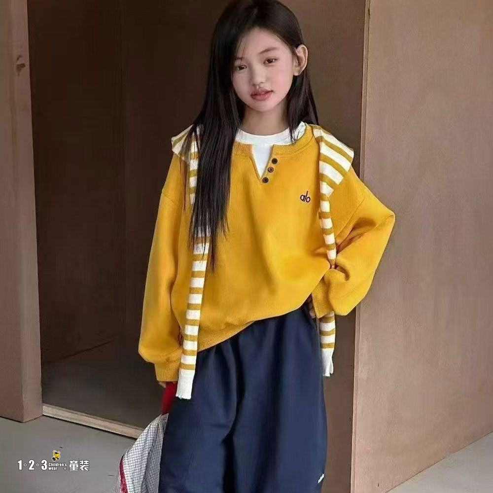 【双十一活动32.9元】★【特价】黄 冬款 女中童25169 TMDD时尚厚套头衫1+2=3童装连锁
