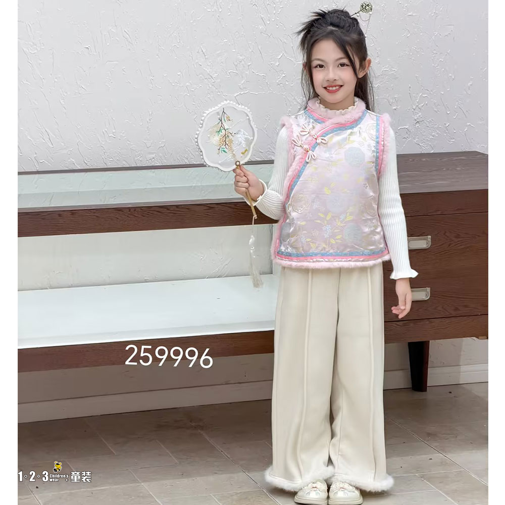 【福利专享93.9元】★粉 冬款 女中童259996 KJDD时尚长袖厚套装1+2=3童装连锁