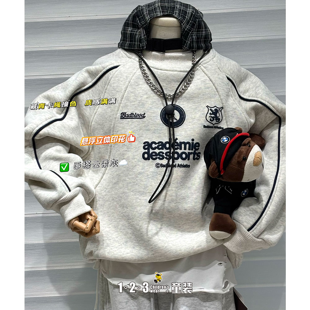 (奥粒一体绒)【特价】烟灰 冬款 男中童NH25908 WPDD时尚厚套头衫1+2=3童装连锁