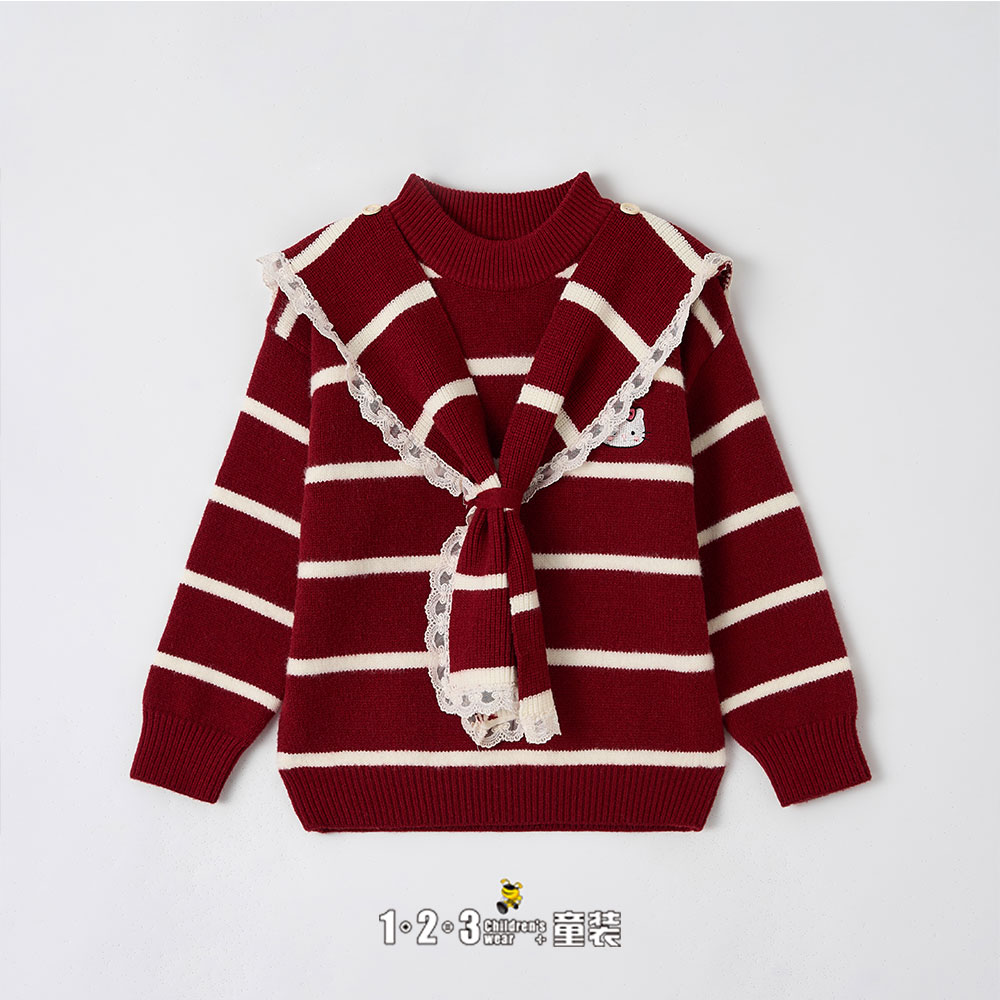 (多多同款)【特价】红 冬款 女中童5F00604 DDDD时尚厚毛衣1+2=3童装连锁