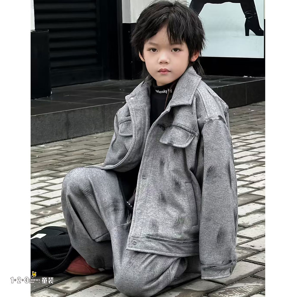 ★浅灰 冬款 男中童8597 HXDD时尚套装1+2=3童装连锁