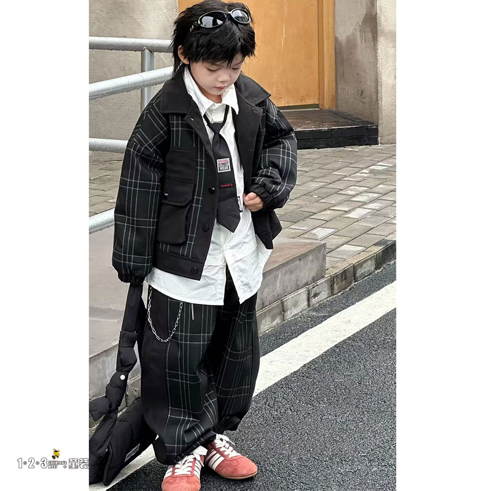 ★黑 冬款 男中童85106 HXDD时尚套装1+2=3童装连锁
