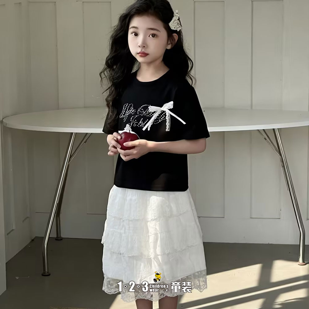 《甜美》(多多同款)【特价】白 夏款 110-140女中童6F20818 DDDD时尚腰裙、纱裙1+2=3童装连锁